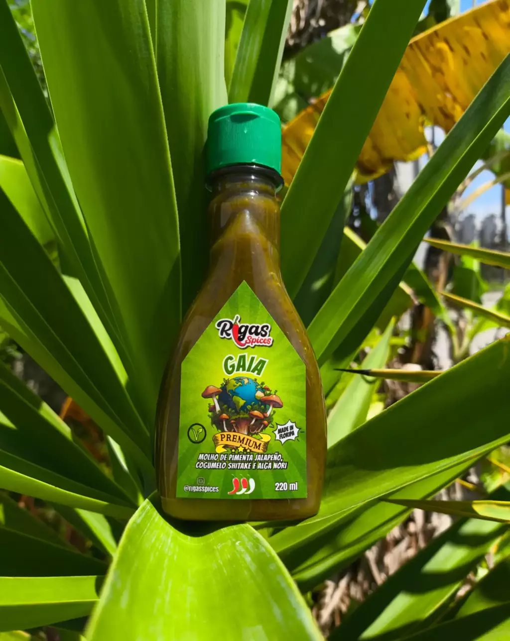 Inspirado nos elemetos da natureza, Gaia é um molho surf n' turf, com ingredientes da terra e do mar. O molho é uma deliciosa combinação da pimenta Jalapeño, cogumelo shiitake e alga nori.